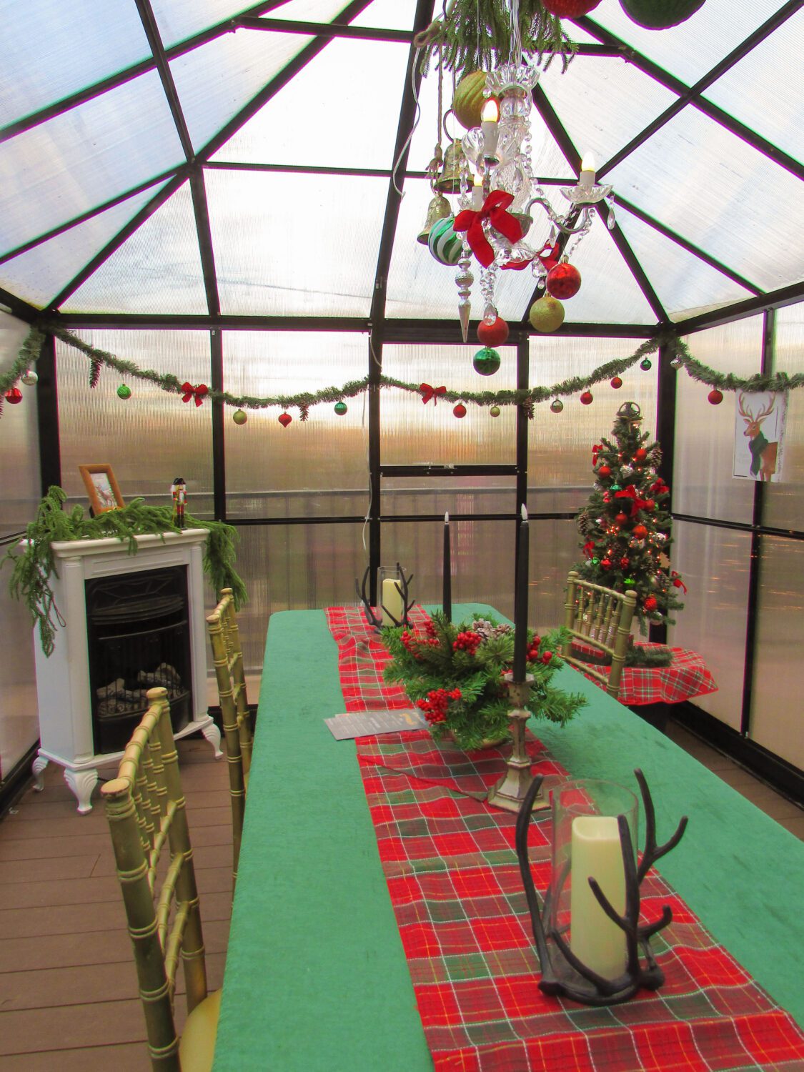 Step into a truly one-of-a-kind experience at The Copper Mug Grille with our exclusive Private Greenhouse Dining. These spacious, polycarbonate greenhouses, set on our restaurant deck at Landoll’s Mohican Castle, offer a perfect blend of elegance and comfort. Heated and designed to comfortably seat up to 10 people, these greenhouses create a cozy and intimate atmosphere, ideal for an unforgettable evening under the stars or a delightful afternoon surrounded by nature. Each greenhouse will be eloquently decorated with seasonal décor and centerpiece, featuring a chandelier to set the perfect mood.